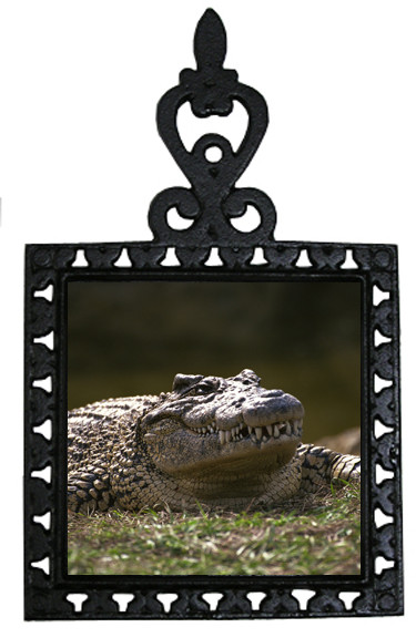 This beautifully designed Alligator square trivet looks great simply hanging on a wall or use it on the kitchen table. This item features a cast iron trivet surrounding a Alligator 4 x 4 inch ceramic tile. This trivet makes a great gift item for any animal lover.