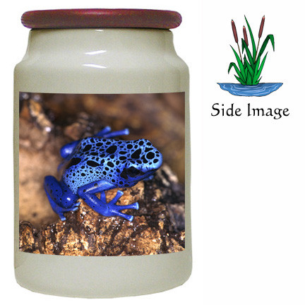 The Canister jar is a smaller version of our very popular Cookie Jar. These Frog Canister jars are the perfect holder for coffee, tea or sugar and will compliment any kitchen. Great as a gift for any animal lover, this Frog Canister jar is just the right size measuring about 6 inches tall and 3.5 inches wide. The white ceramic canister jars are sealed tightly with a mahogany finished wood lid for the perfect touch.