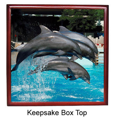 This felt lined wooden Keepsake Box gives animal lovers an excellent way to store their jewelry, personal items and favorite things. The Mahagony box features a 6 inch Dolphin decorated ceramic tile in a hinged top. Great as a Gift! Actual box dimensions are 6.75 x 6.75 inches x 2.75 inches deep. Inside area is 5 7/8 x 5 7/8 x 1 1/2 inches deep.