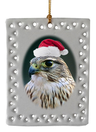 This delightful rectangle porcelain Falcon Christmas Ornament will provide a festive addition to your family celebrations. It features a Falcon on both the front and back of the ornament. Hang it on your Christmas tree or decorate anywhere around the house. This collectible ornament also makes a great gift for any bird lover. Measures about 3.5 inches high and 2.75 inches wide.