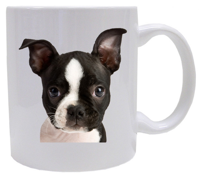 An 11 oz. ceramic Boston Terrier coffee mug with a picture of a great looking Boston Terrier on one side and I Love My Boston Terrier on the other. This beautifully designed coffee mug is dishwasher and microwave safe. Great as a gift item for the dog lover or to add to your own collection.