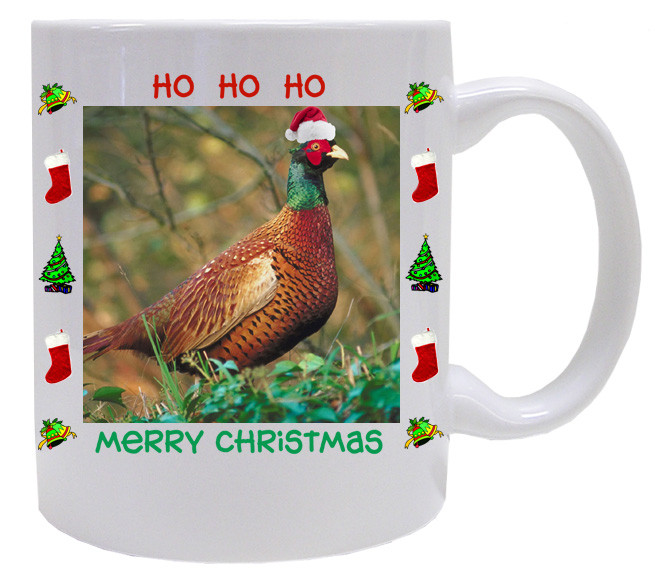 Celebrate the holiday season with this beautifully designed Pheasant Christmas Mug. This beautiful 11 oz. ceramic Pheasant holiday coffee mug features a festive picture of a great looking Pheasant on both sides. The Pheasant Christmas coffee mug is dishwasher and microwave safe. Great as a gift item for the bird lover or to add to your own holiday collection.