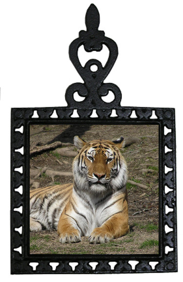 This beautifully designed Tiger square trivet looks great simply hanging on a wall or use it on the kitchen table. This item features a cast iron trivet surrounding a Tiger 4 x 4 inch ceramic tile. This trivet makes a great gift item for any animal lover.