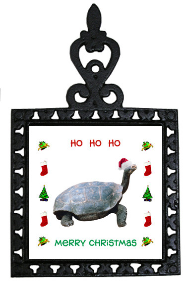 Celebrate the holiday season with this beautifully designed Turtle square color Christmas Trivet. The Christmas Trivet looks great simply hanging on a wall or use it on the kitchen table. The holiday trivet features a cast iron trivet surrounding a festive Turtle on a 4 x 4 inch ceramic tile. The Turtle Christmas Trivet makes a great gift item for the animal lover.