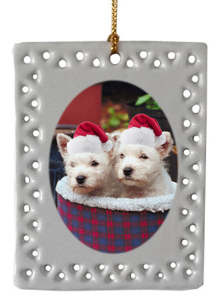 This delightful rectangle porcelain West Highland Terrier Christmas Ornament will provide a festive addition to your family celebrations. It features a West Highland Terrier on both the front and back of the ornament. Hang it on your Christmas tree or decorate anywhere around the house. This collectible ornament also makes a great gift for any dog lover. Measures about 3.5 inches high and 2.75 inches wide